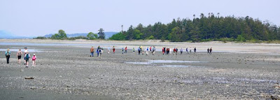 On Saturday 15 May there was a very low tide and 40 people hiked across the intertidal flats to Tree Island, off the northwest end of Denman.