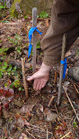 The little trees are planted on one level of the sandstone conglomerate ridge.