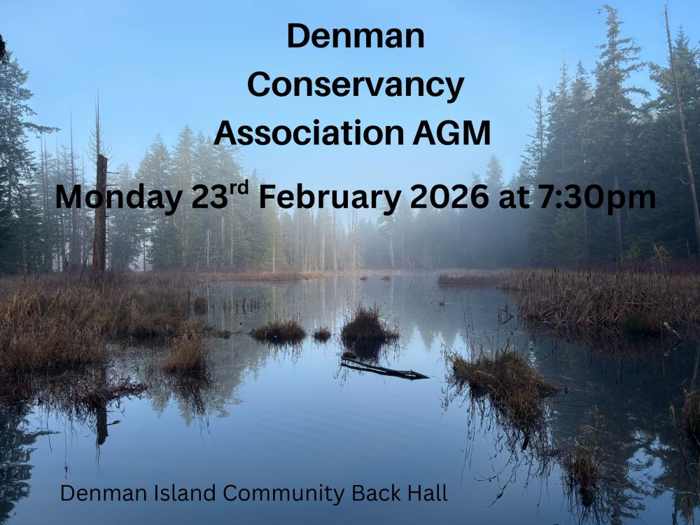 The Denman Conservancy Association Annual General Meeting will be held on Monday Feb 23 at the Denman Island Community Back Hall starting at 7.30 pm.